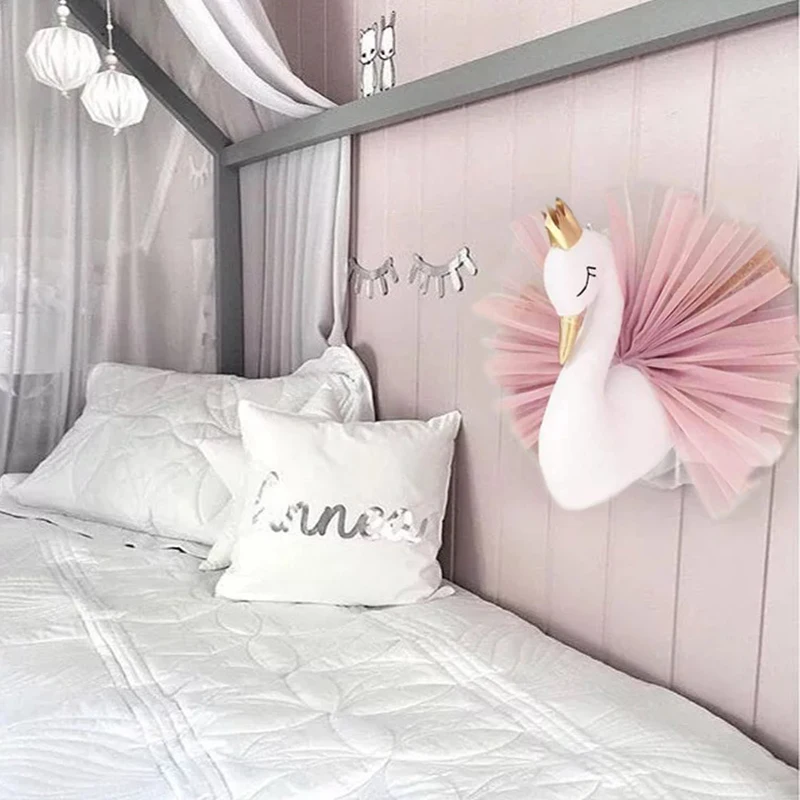 Best For You Wedding Party Decoration 3D Golden Crown Swan Wall Art Hanging Girl Swan Doll Stuffed Toy Animal He