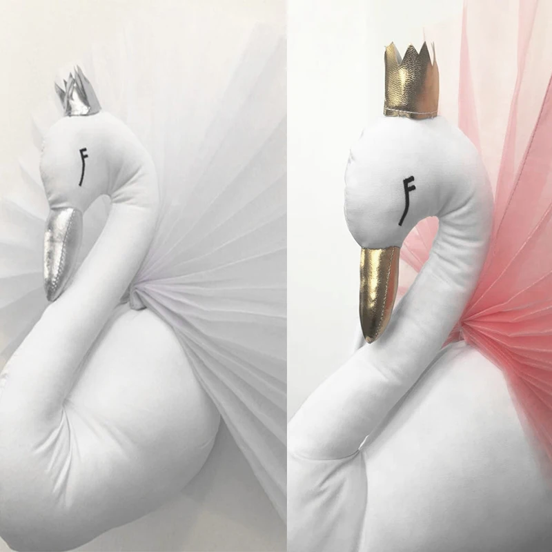 Get a 31% discount for Wedding Party Decoration 3D Golden Crown Swan Wall Art Hanging Girl Swan Doll Stuffed Toy Animal He